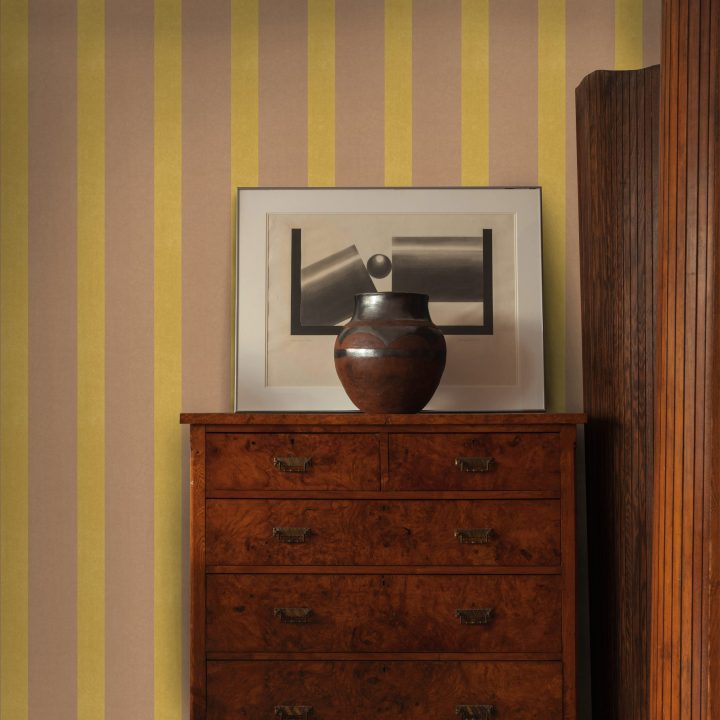 Brown Paper Stripe designed by renowned London based interior designer Adam Bray. His innovative style brings a modern twist to the classic stripe in this exciting award winning collection of wallpapers.